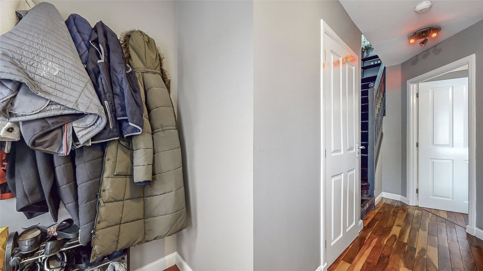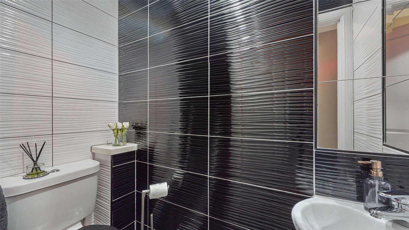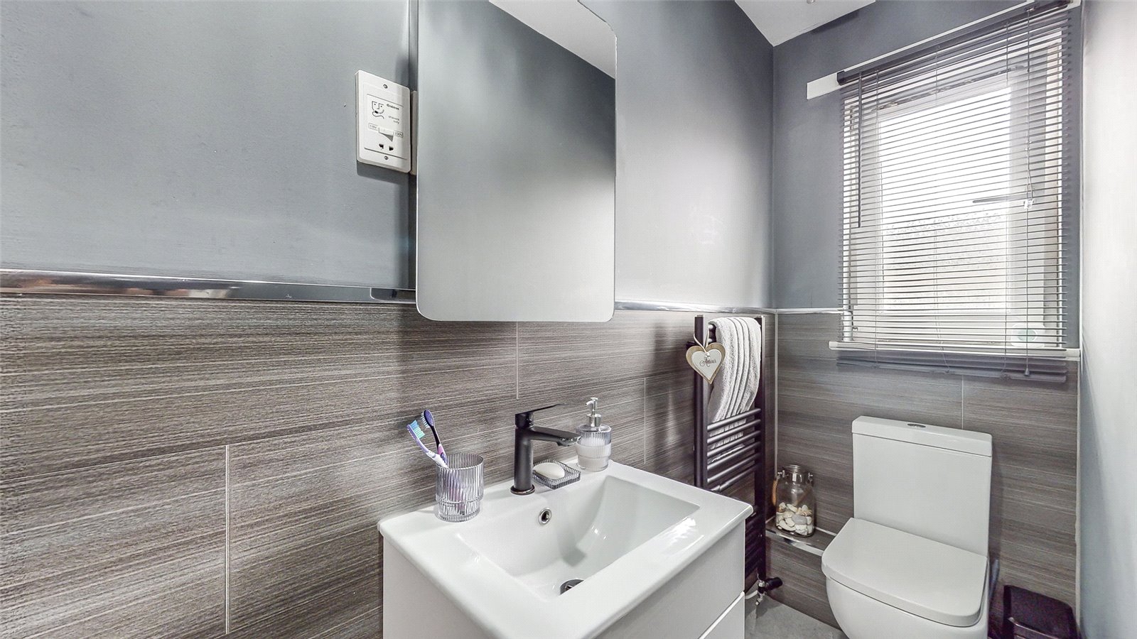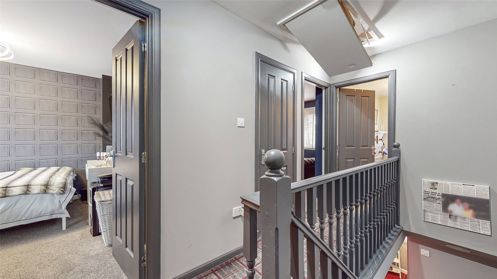 On the upper level, there are three good sized bedrooms - master benefiting from en suite facility and additional modern family bathroom. There is plentiful floored loft space which can be utilised in many ways and contains sizeable additional storage solutions.