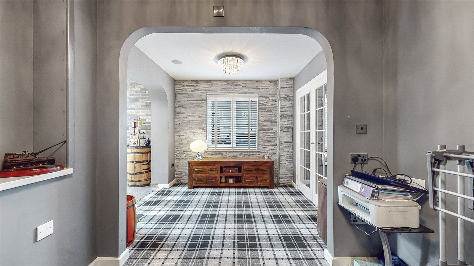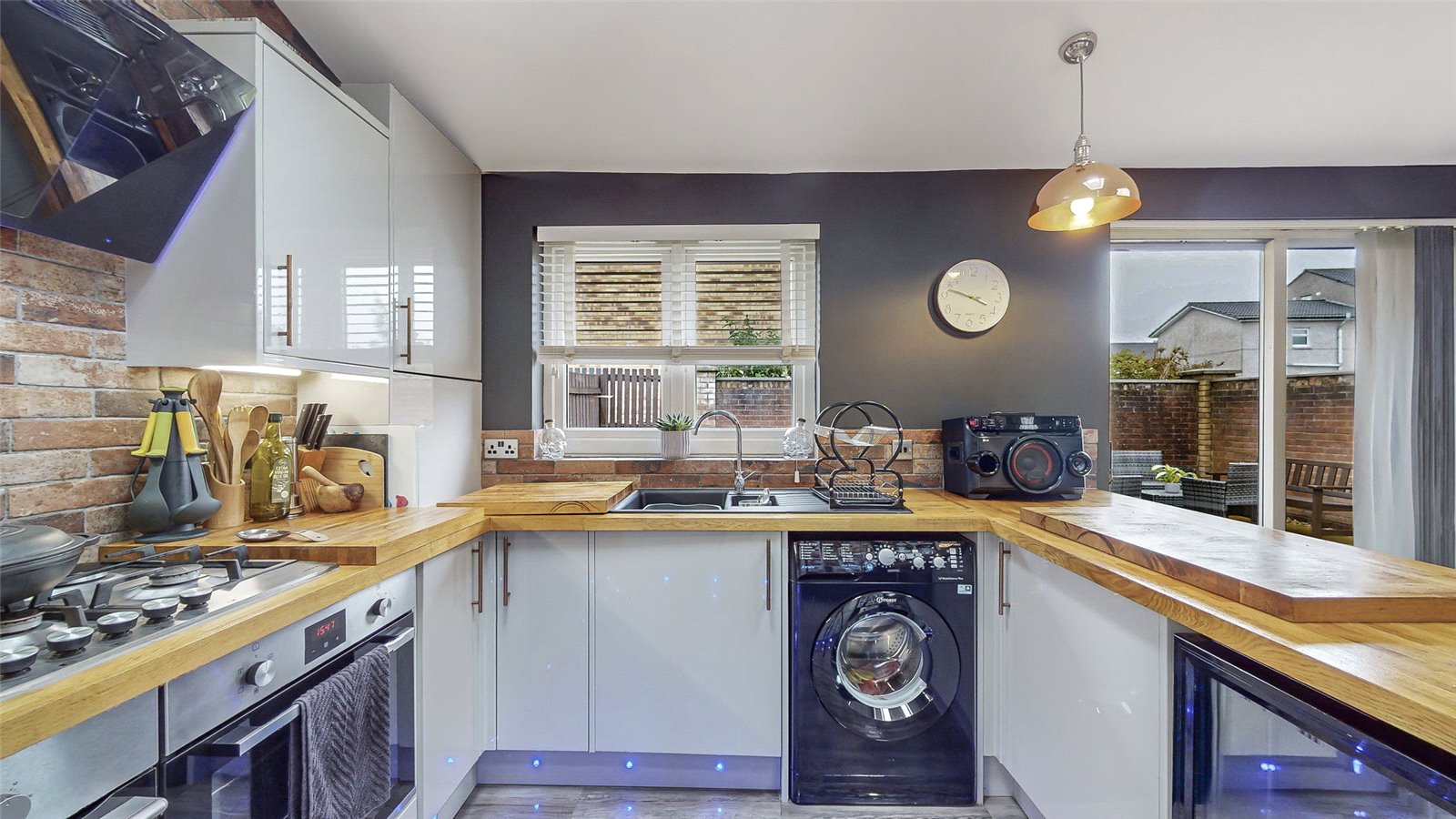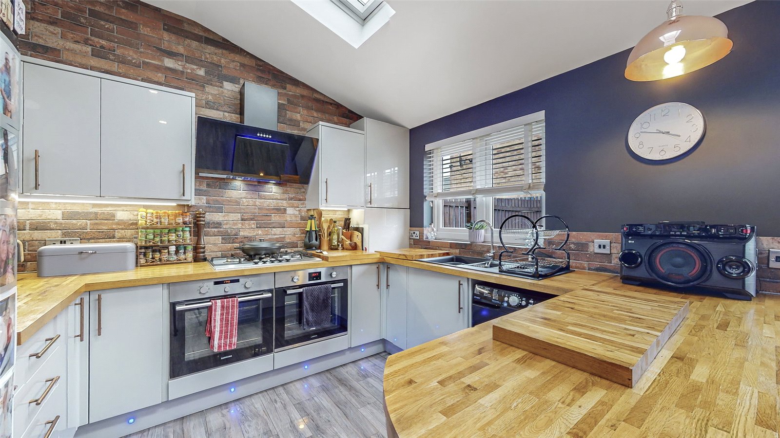 The property on offer comprises welcoming reception hallway, downstairs cloaks/WC, well presented good sized lounge with focal feature fireplace, dining room, modern fitted kitchen flooded by light and boasting a breakfast bar with a mix of wall and base units plus integrated appliances.