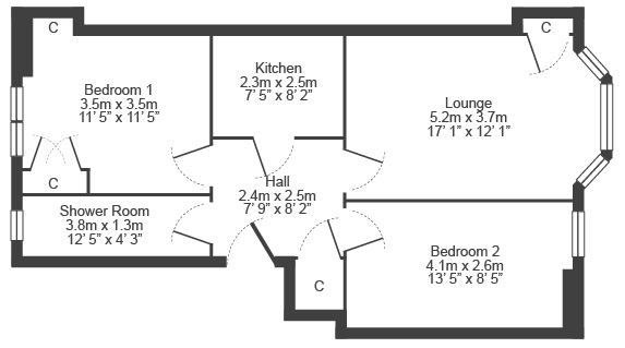 Both bedrooms are doubles where the main bedroom has a large cupboard containing the boiler and additional storage space. The shower room is fitted with a sink (which is mounted on a vanity unit with storage), toilet and glass shower cubicle.
