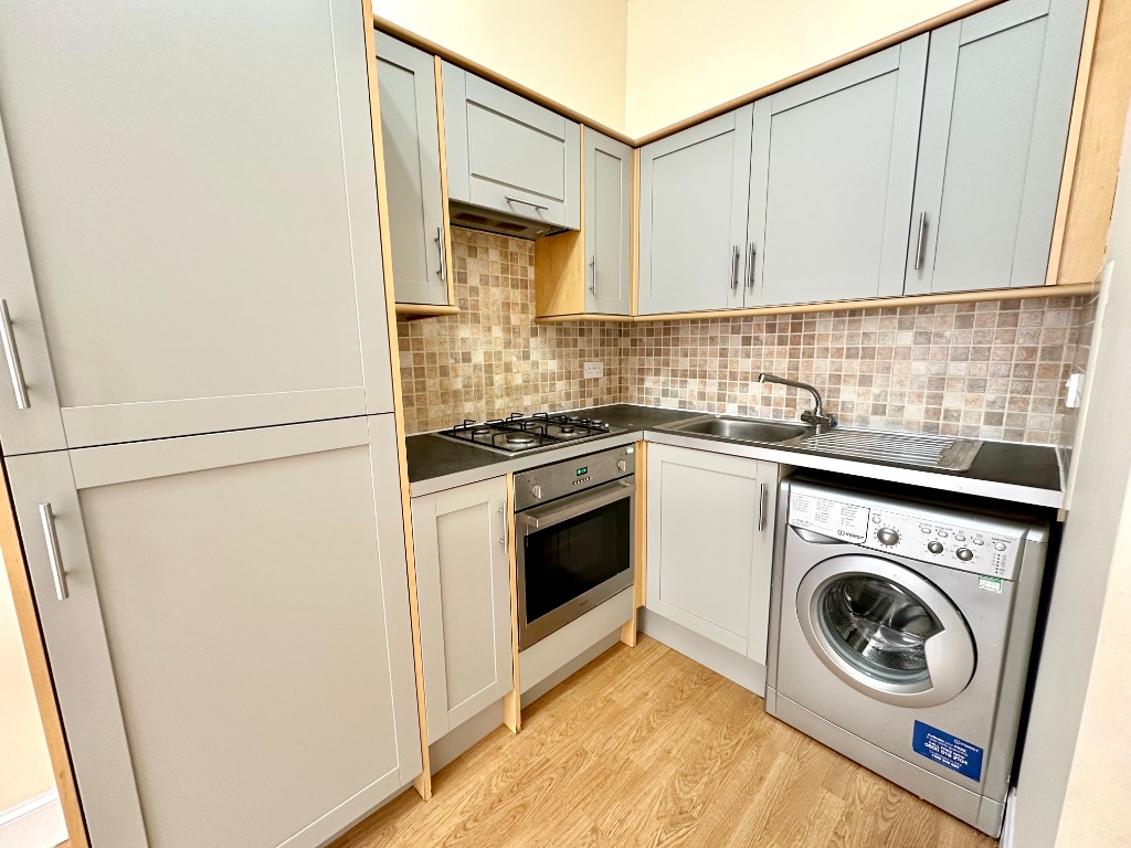 The building is entered via secure fob entry system and internally comprises entrance hallway, open plan living room and kitchen with a range of wall and floor mounted fitted units and appliances including fridge/freezer, washing machine, gas hob and electric oven, spacious double bedroom with built in storage and internal fully tiled bathroom with mains powered shower over the bath. There is also a private secure storage cupboard in the communal stairwell area which has exclusive use by this flat and could be used to store a bicycle, for example.