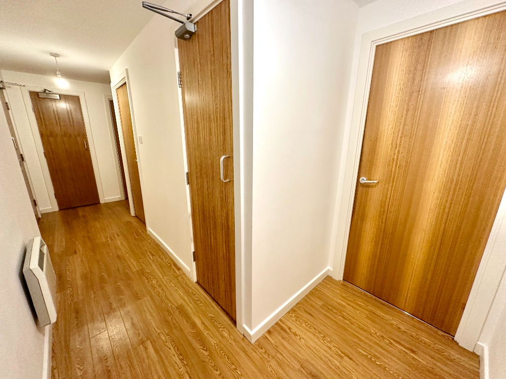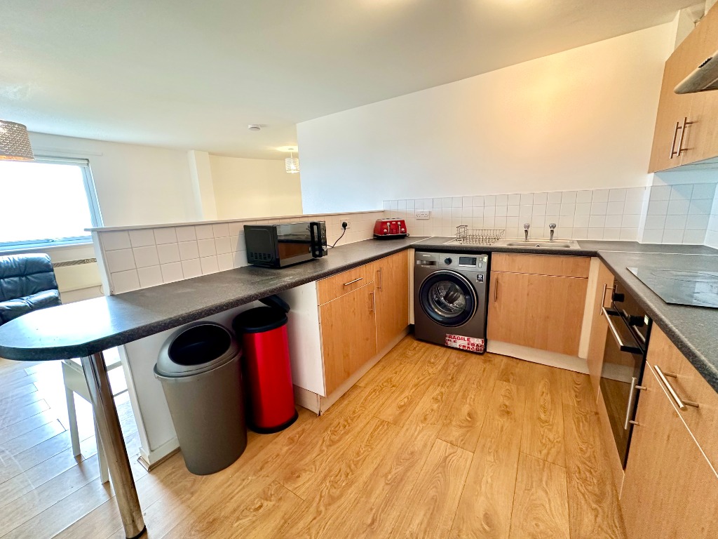 The building is entered into via a secure fob entry system and there are stairs and a lift to take you to the eleventh floor. Internally the property comprises of reception hallway with two storage cupboards, an internal main bathroom with white three piece bathroom suite and electric shower over the bath, spacious and bright open plan living room / dining room / kitchen which comes complete with appliances including fridge freezer, washing machine, ceramic hob and electric oven and finally three double sized bedrooms, one of which has an en-suite shower room.