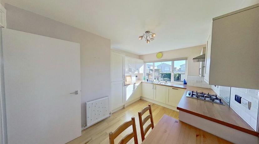 The property comprises a generous lounge with large window allowing for excellent natural light, a modern fitted kitchen with integrated appliances and ample dining space, and two well-proportioned bedrooms. The contemporary bathroom is finished to a high standard and includes a walk-in shower with an overhead mains shower.