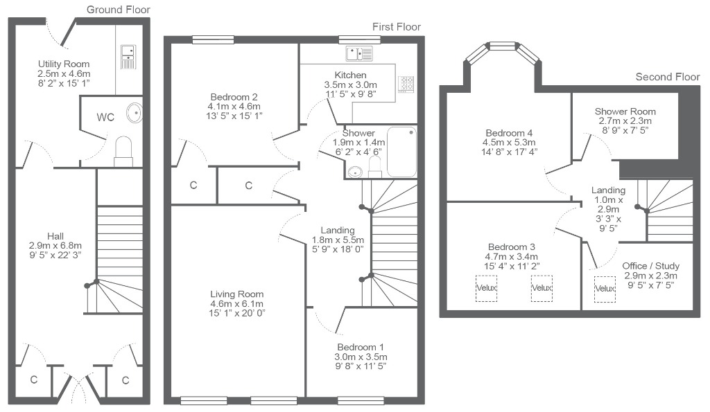 The ground floor of this newly refurbished property comprises of large open hallway, utility room housing the washing machine, WC and spectacular stairway leading to the upper floors.