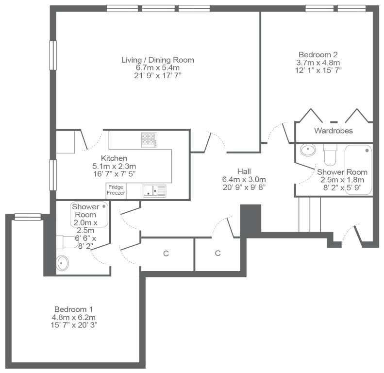 Located within the former Gartsherrie Academy built in 1845, this unique property is one of 11 flats within this beautiful converted building set in its own grounds with private gardens and car park. The building is entered into via a secure entry system into a lovely, bright hallway which then leads to a very large atrium which gives access to flat number 6. Internally the property consists of a hallway which has three steps at the entry and has a large storage cupboard off, generously sized living room with dining area with large windows which look out to the well kept mature gardens to the side and rear of the building, fully fitted kitchen complete with appliances including gas hob, electric oven, fridge freezer, washing machine and dish washer, two double sized bedrooms, one having a large storage cupboard and an en-suite shower room with shower, wc and sink and the other bedroom has fitted wardrobes. Finally there is a modern fully tiled shower room with white ceramics, wc, sink and a double width walk-in shower cubicle.