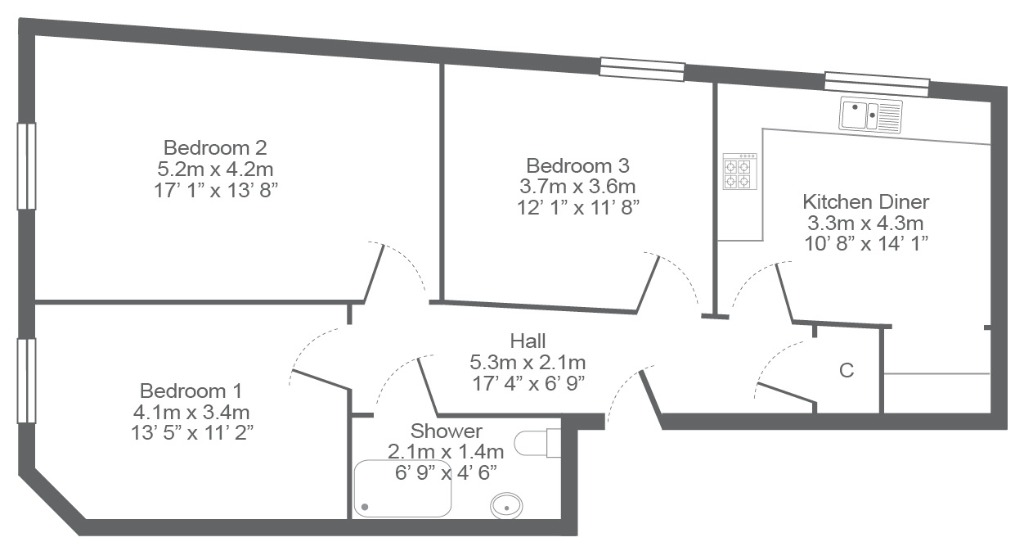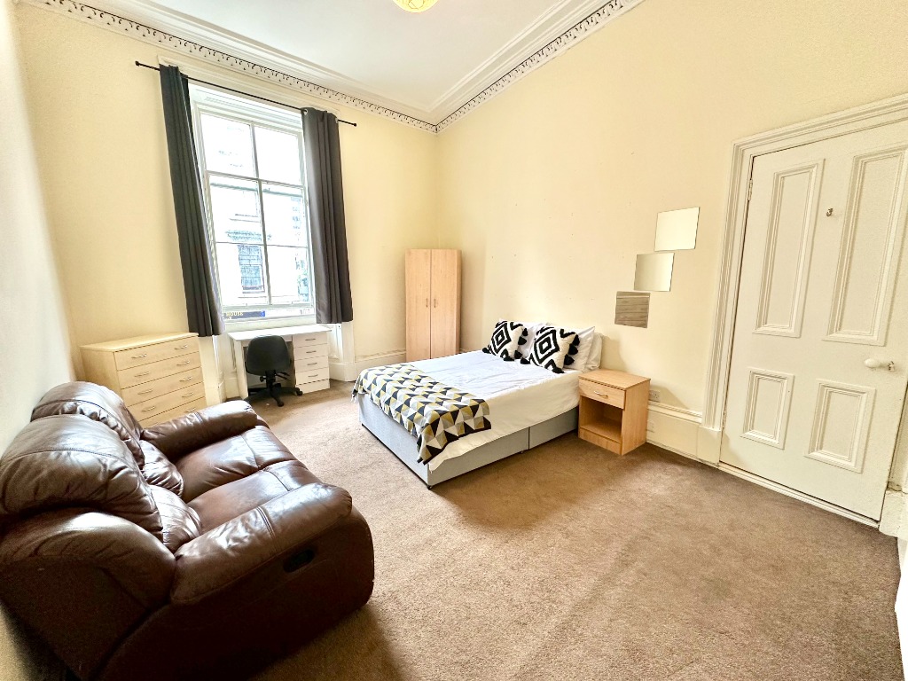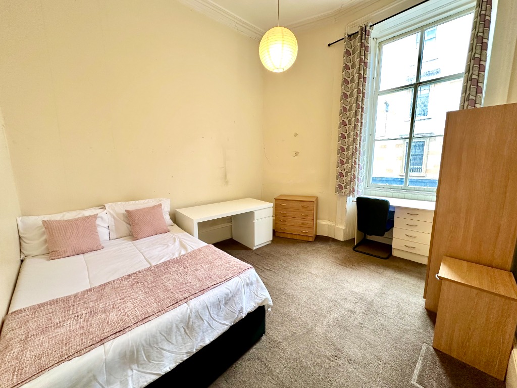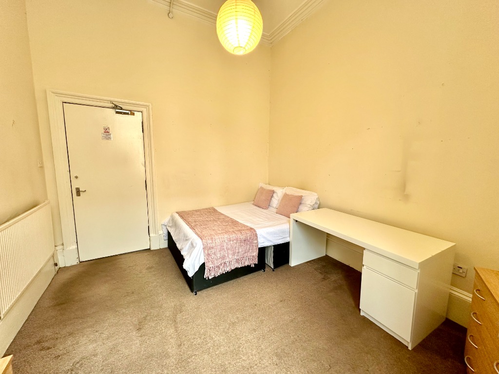 Three bedroom first floor furnished flat located within a traditional tenement red sandstone building near the Charing Cross area. HMO Licenced for three people.