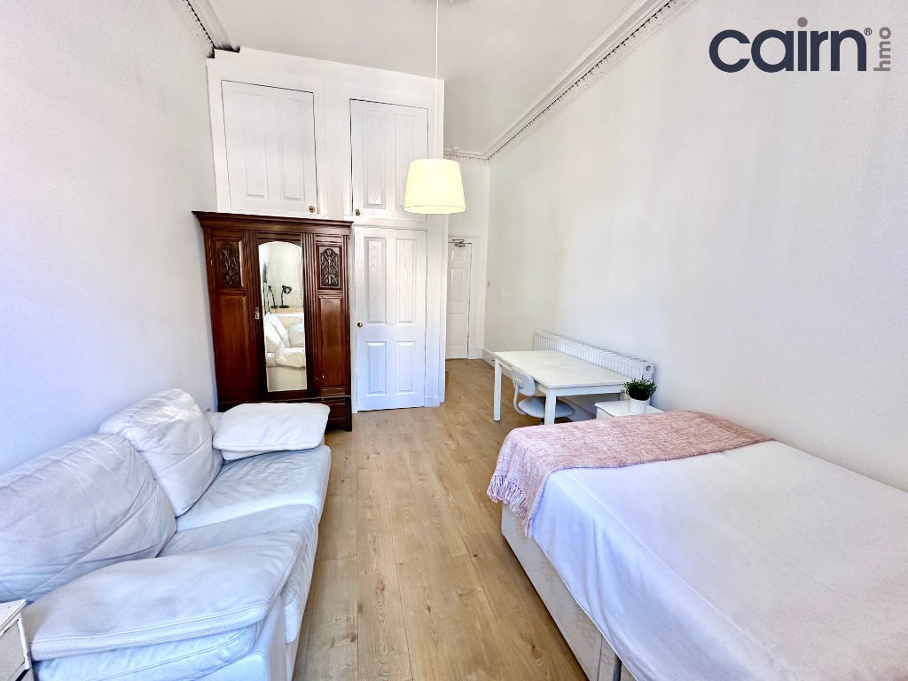 An eight bedroom first floor fully furnished HMO property situated within a traditional red sandstone tenement building in popular Kersland Street in the West End of Glasgow.