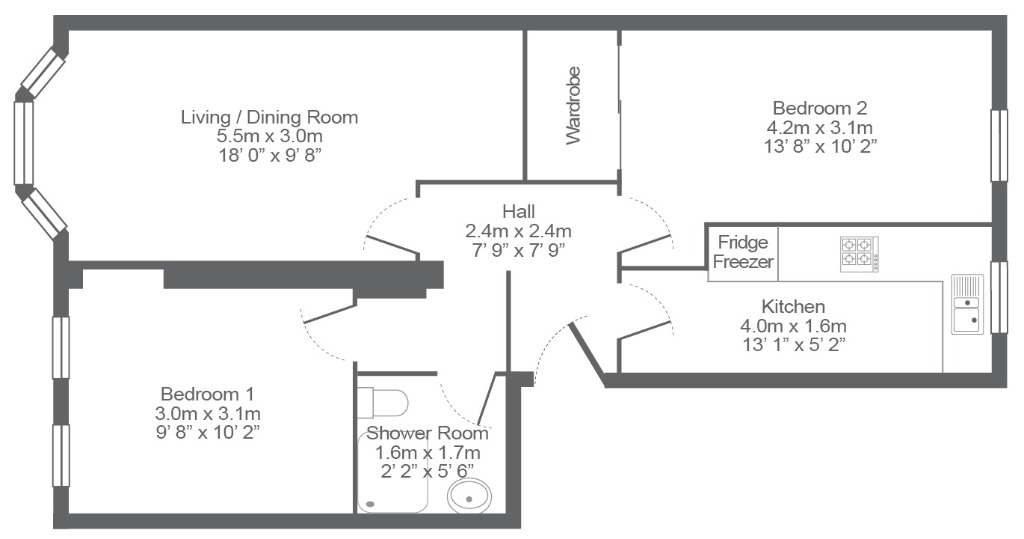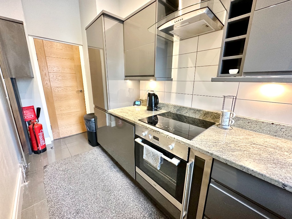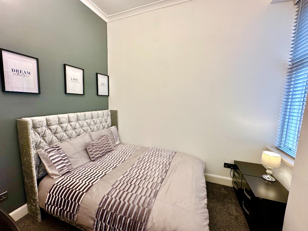 The building is entered into via secure fob entry system and the property is located on the second floor accessed only via stairs. Internally the flat features a hallway which gives access to all rooms. There is a generously sized living / dining room with traditional bay window, fully fitted modern kitchen with ample storage and worktop space which comes complete with integrated appliances including ceramic hob, electric oven, washing machine, fridge freezer and wine fridge. The internal shower room features modern white ceramics and a walk-in shower cubicle. Both bedrooms are furnished with a double bed with mattress, desk and chair and storage units and one bedroom has fitted wardrobes for extra storage.