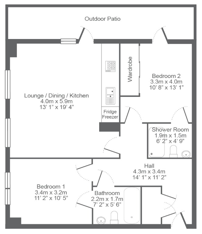 This modern high spec property is entered into via secure fob entry system into the well maintained communal entrance hallway which features two lifts and the private post boxes for all apartments. Internally the flat has a hallway with storage cupboard which also houses the washing machine and leads to all rooms. There is a spacious open plan lounge / dining area / kitchen featuring a modern fitted kitchen with integrated appliances including fridge freezer, dishwasher, ceramic hob and electric oven. This room has stunning views over the River Clyde and also gives access out onto the large private outdoor patio. with plenty of room for outdoor relaxing or entertaining. There are two double bedrooms, one with fitted wardrobes as well as a modern en-suite shower room and this room also gives access out onto the private patio. Completing the accommodation is an internal main bathroom with modern white three piece bathroom suite and mains powered shower over the bath.