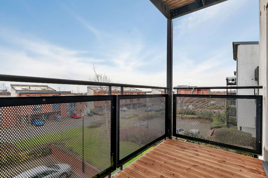 This flat forms part of a modern block and enjoys a practical layout with excellent natural light throughout. A welcoming entrance hallway with storage leads into a spacious open-plan living, dining and kitchen area, creating a fantastic social hub. From here, doors open onto a private balcony with recently renewed timber decking.