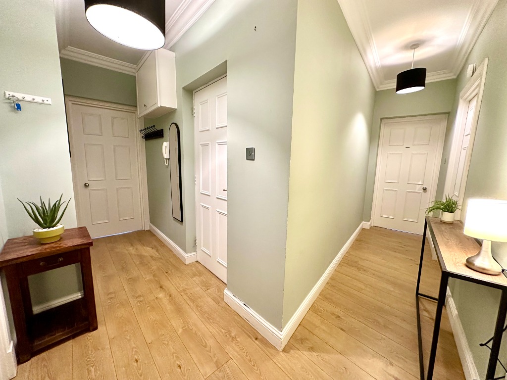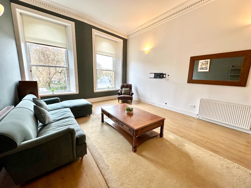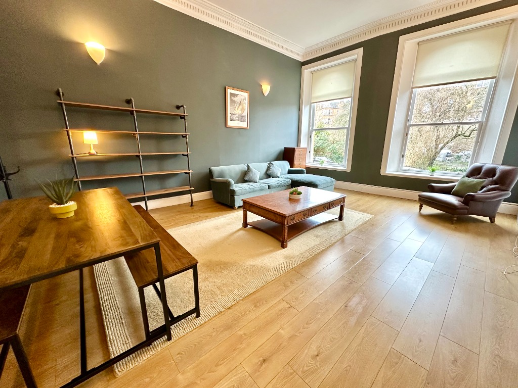 A two bedroom fully furnished ground floor apartment in North Kelvinside offering uninterrupted views of the well-maintained gated resident's gardens.
