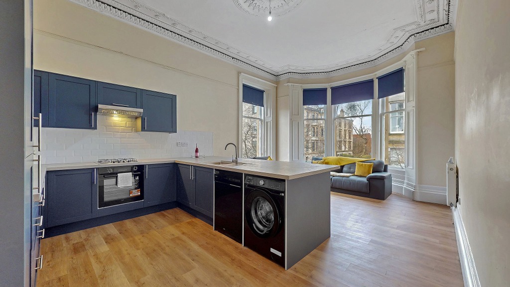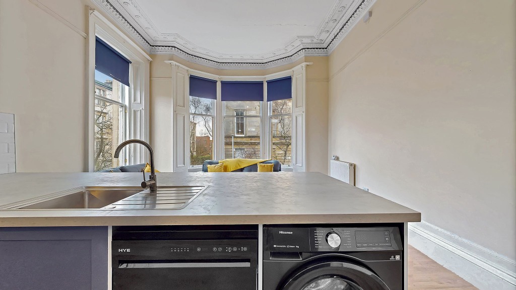 Located within an elegant, fully refurbished traditional tenement in the heart of Hillhead, this exceptionally spacious second-floor flat extends to approximately 164 sq m (1,765 sq ft) and offers a rare blend of classic Glasgow architecture and modern versatility. The building itself has benefited from significant recent upgrades, including roof works and refurbishment of key structural elements, providing reassurance for long-term ownership.