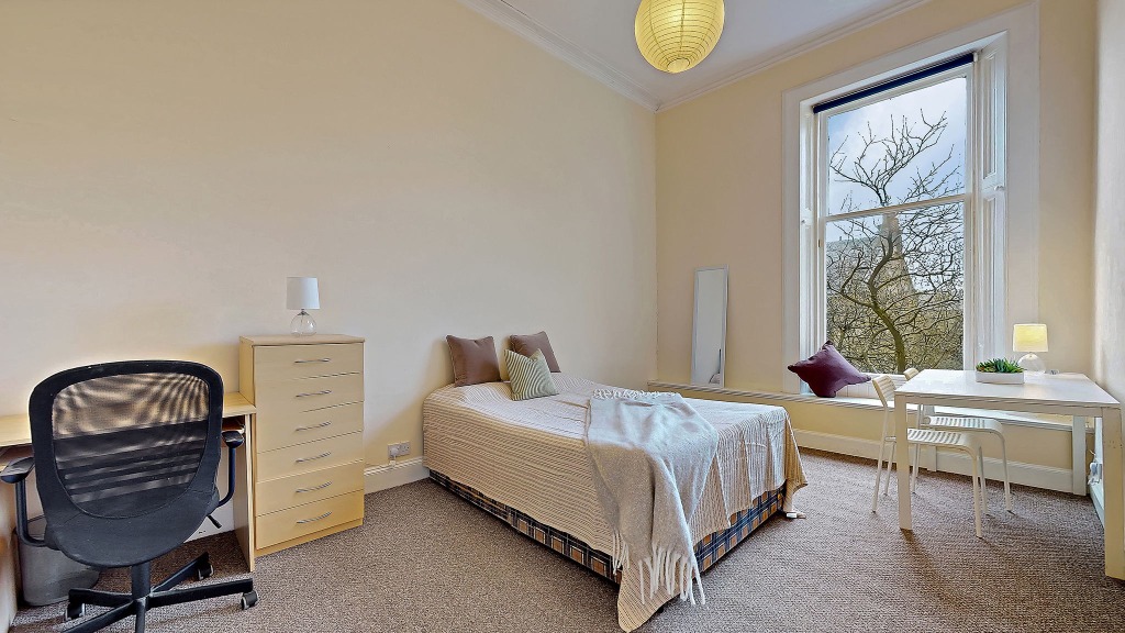 A spacious second-floor 5-bedroom flat in Hillhead, within a recently refurbished building including roof works . Gas central heating, communal gardens, and a prime West End location just off Great Western Road, close to Byres Road and the University of Glasgow.